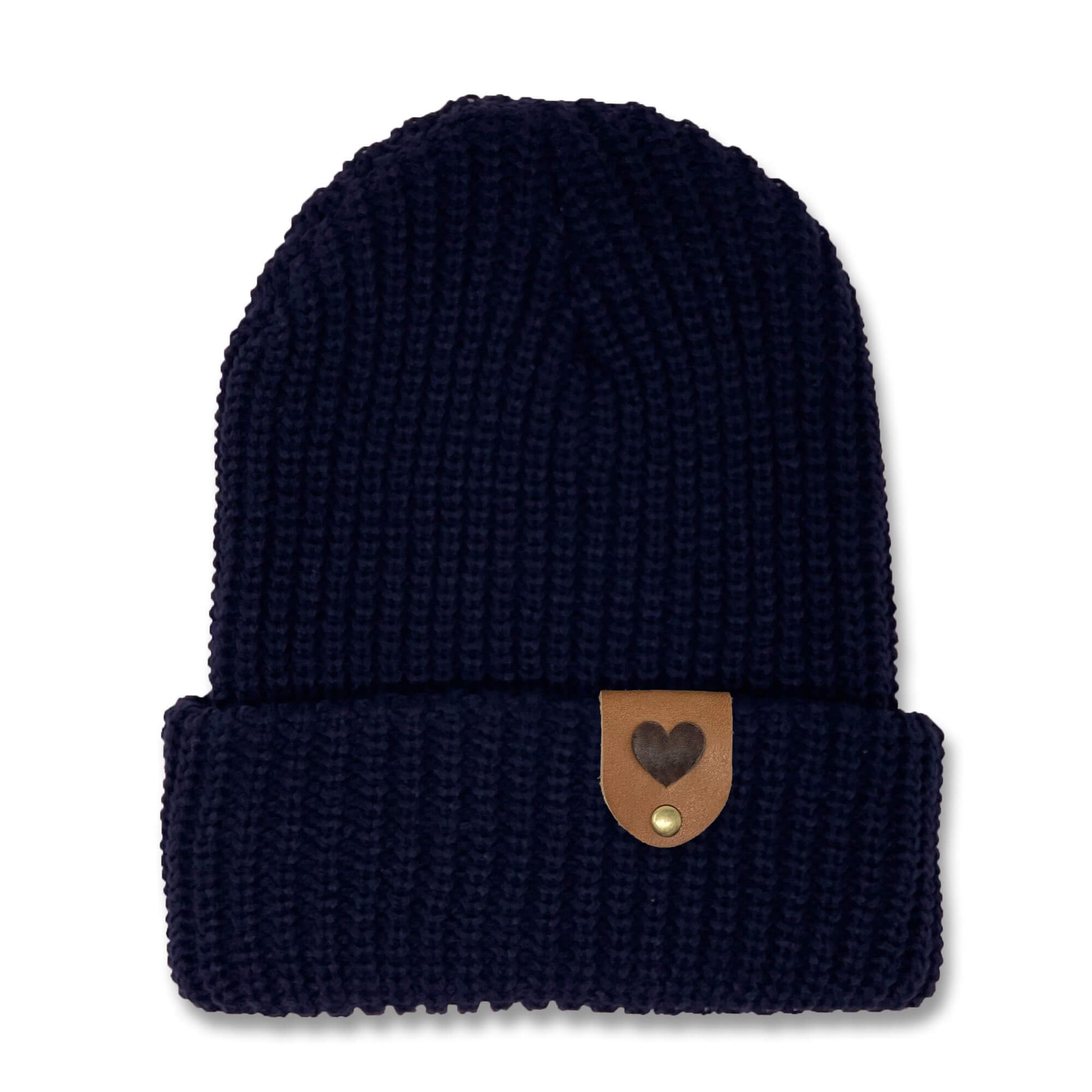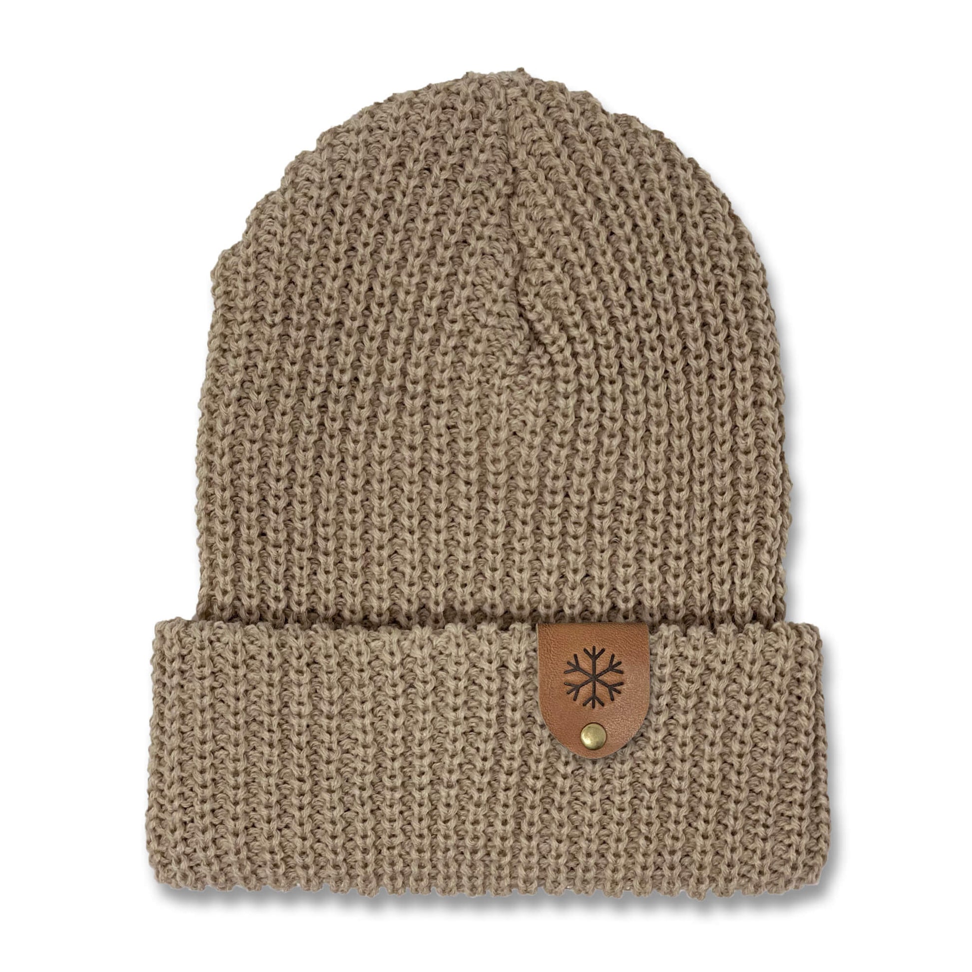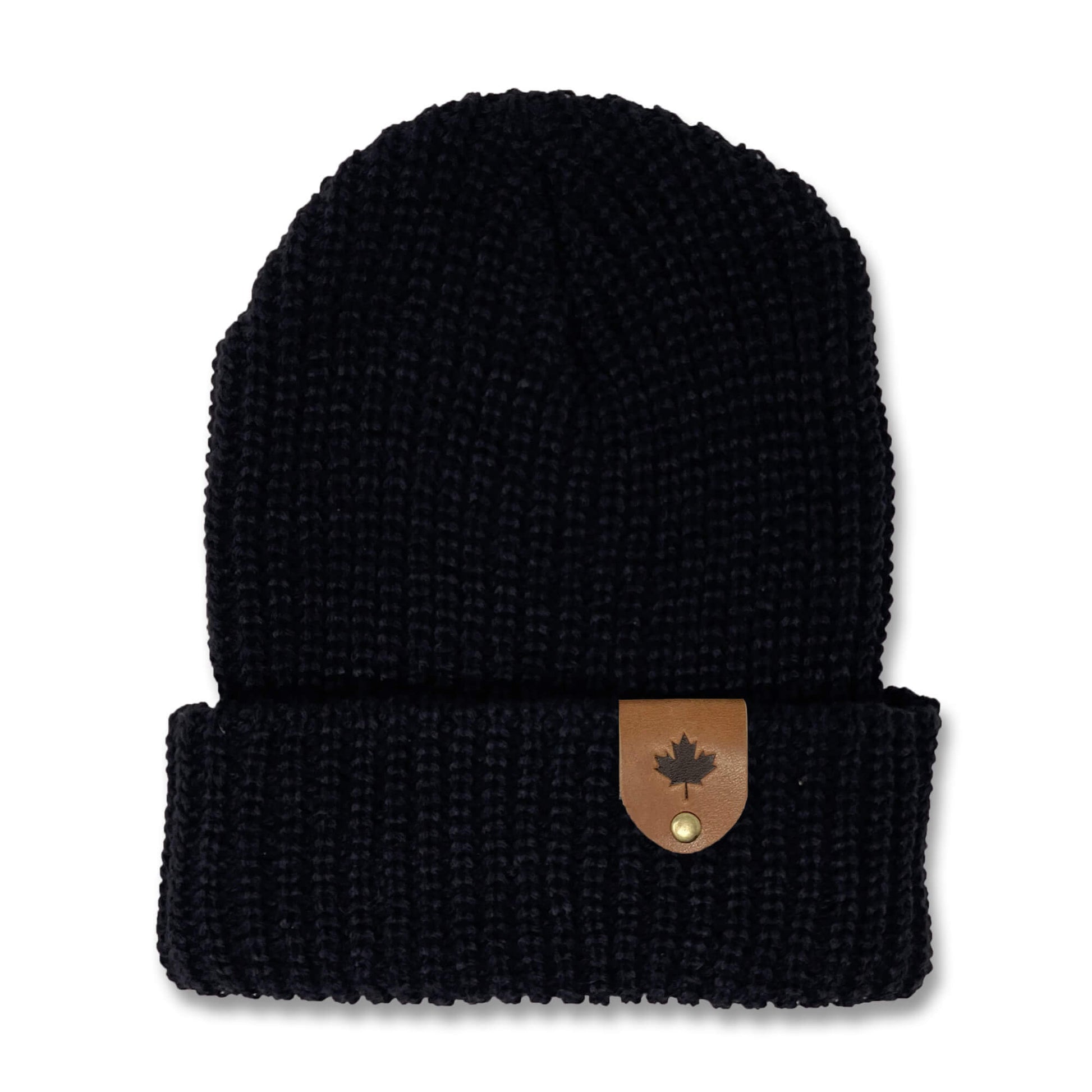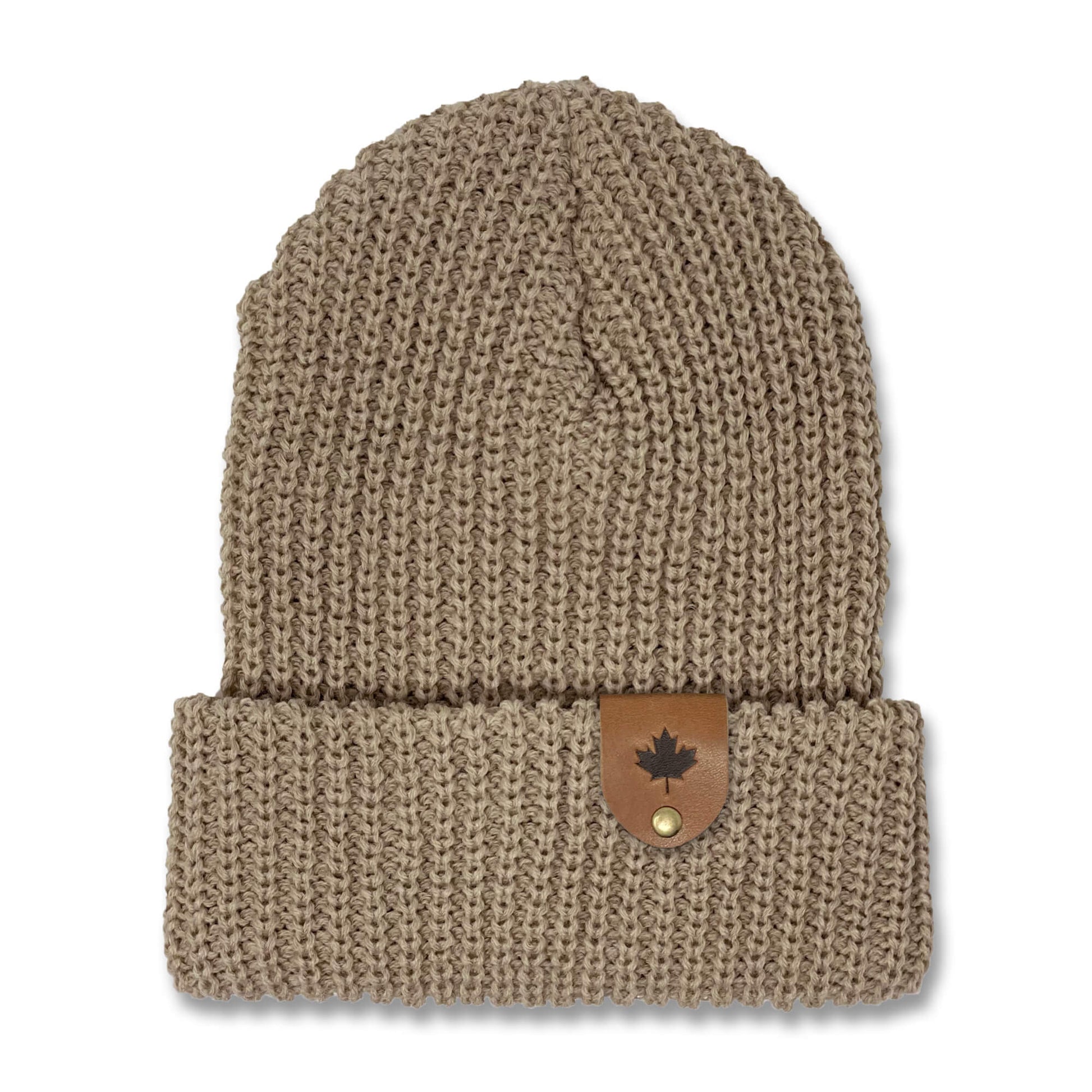 Our chunky knit toque is made in New York by a manufacturer that’s been making headwear for over 30 years. Made from a soft, plush and dense acrylic, this toque will keep your head warm but still let it breathe. The toque can be worn cuffed or uncuffed and features a full-grain leather patch with a heat stamped design, attached with an antique brass rivet.