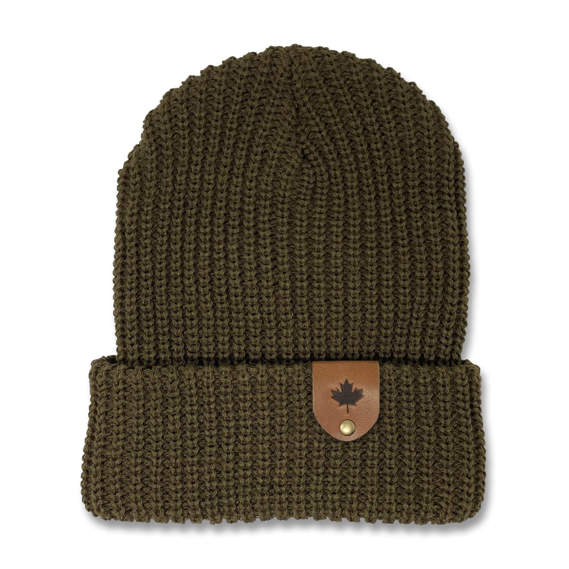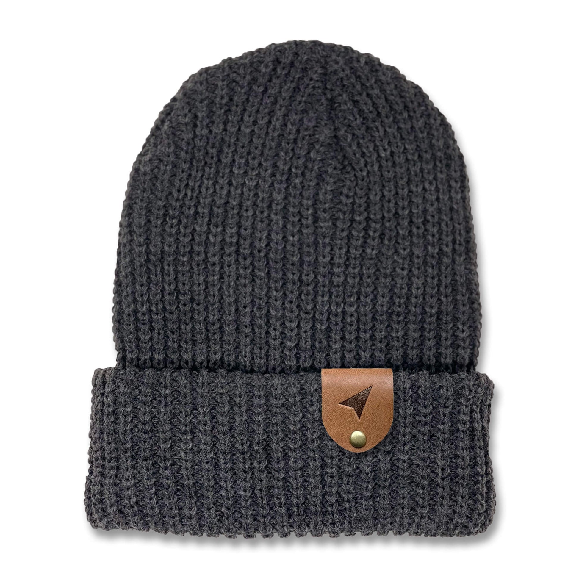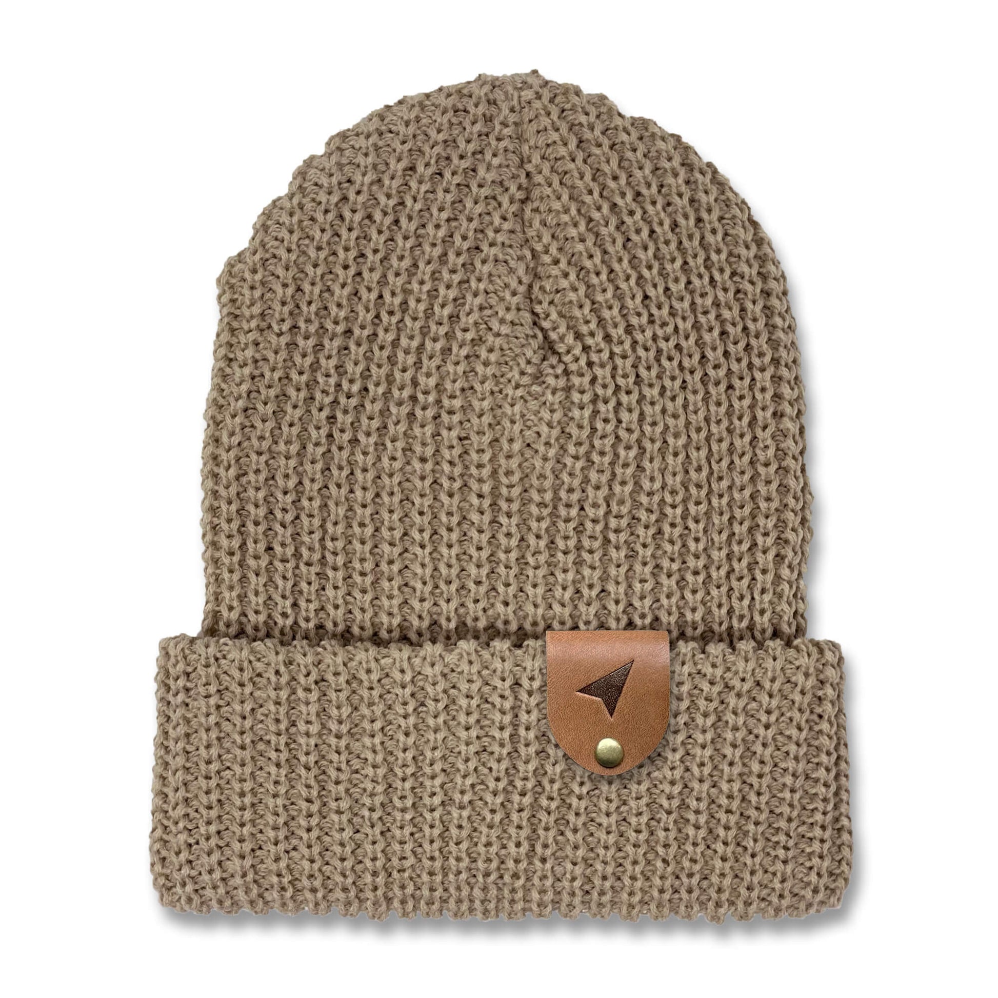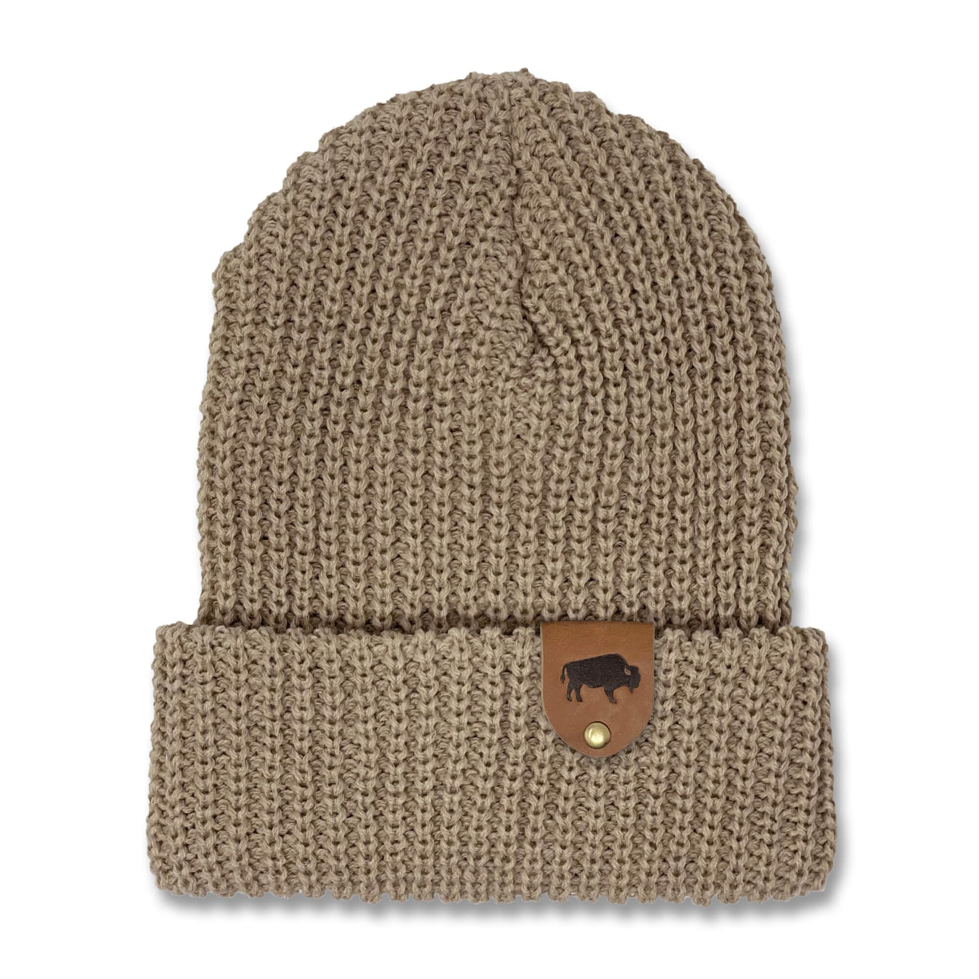 Our chunky knit toque is made in New York by a manufacturer that’s been making headwear for over 30 years. Made from a soft, plush and dense acrylic, this toque will keep your head warm but still let it breathe. The toque can be worn cuffed or uncuffed and features a full-grain leather patch with a heat stamped design, attached with an antique brass rivet.