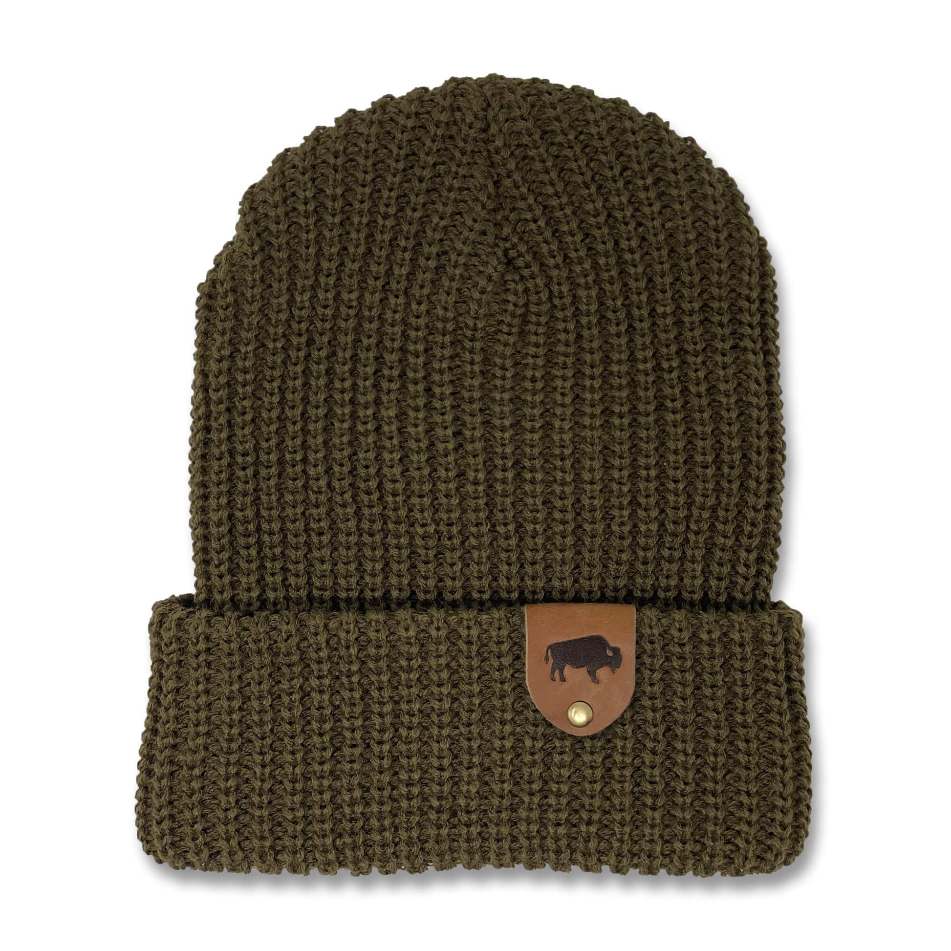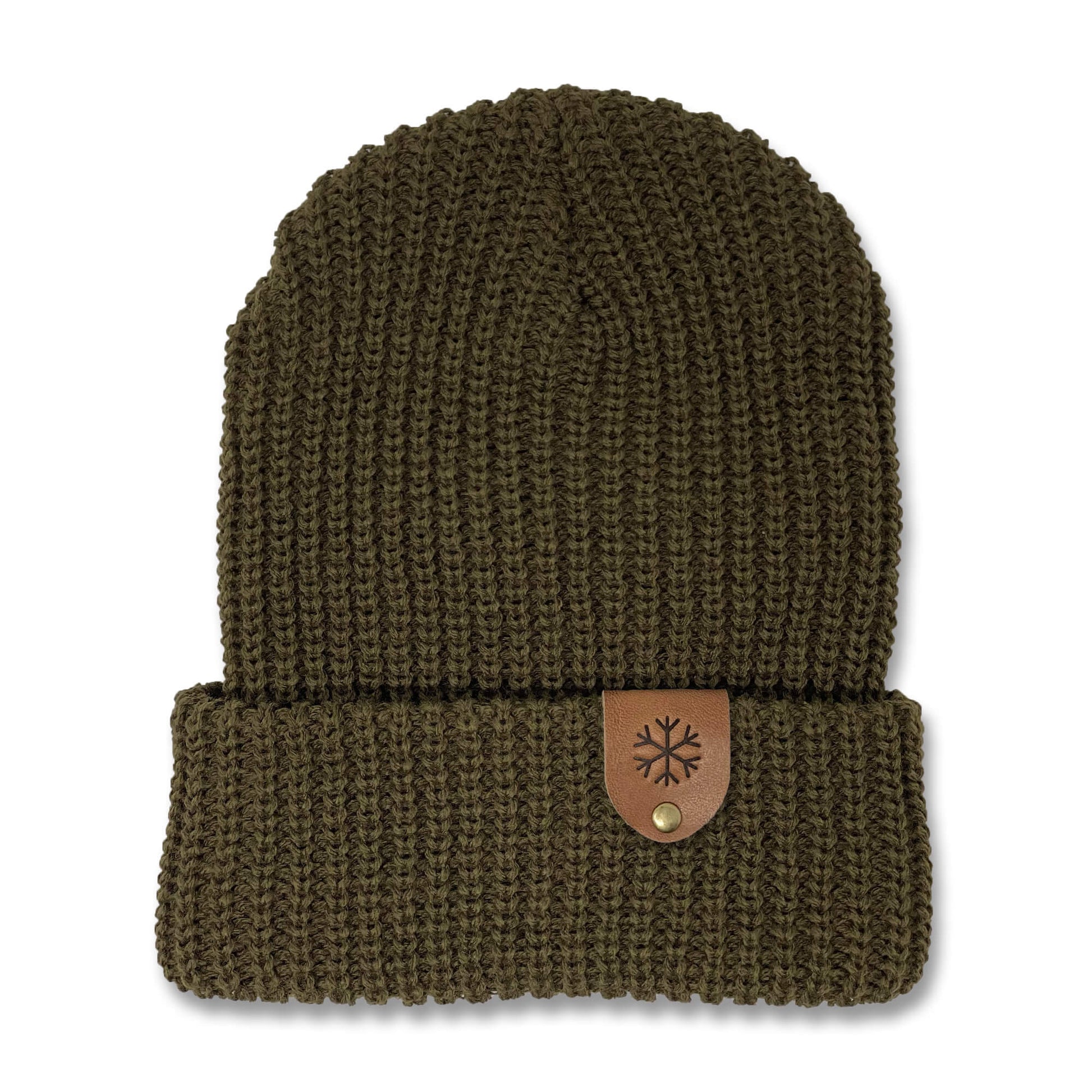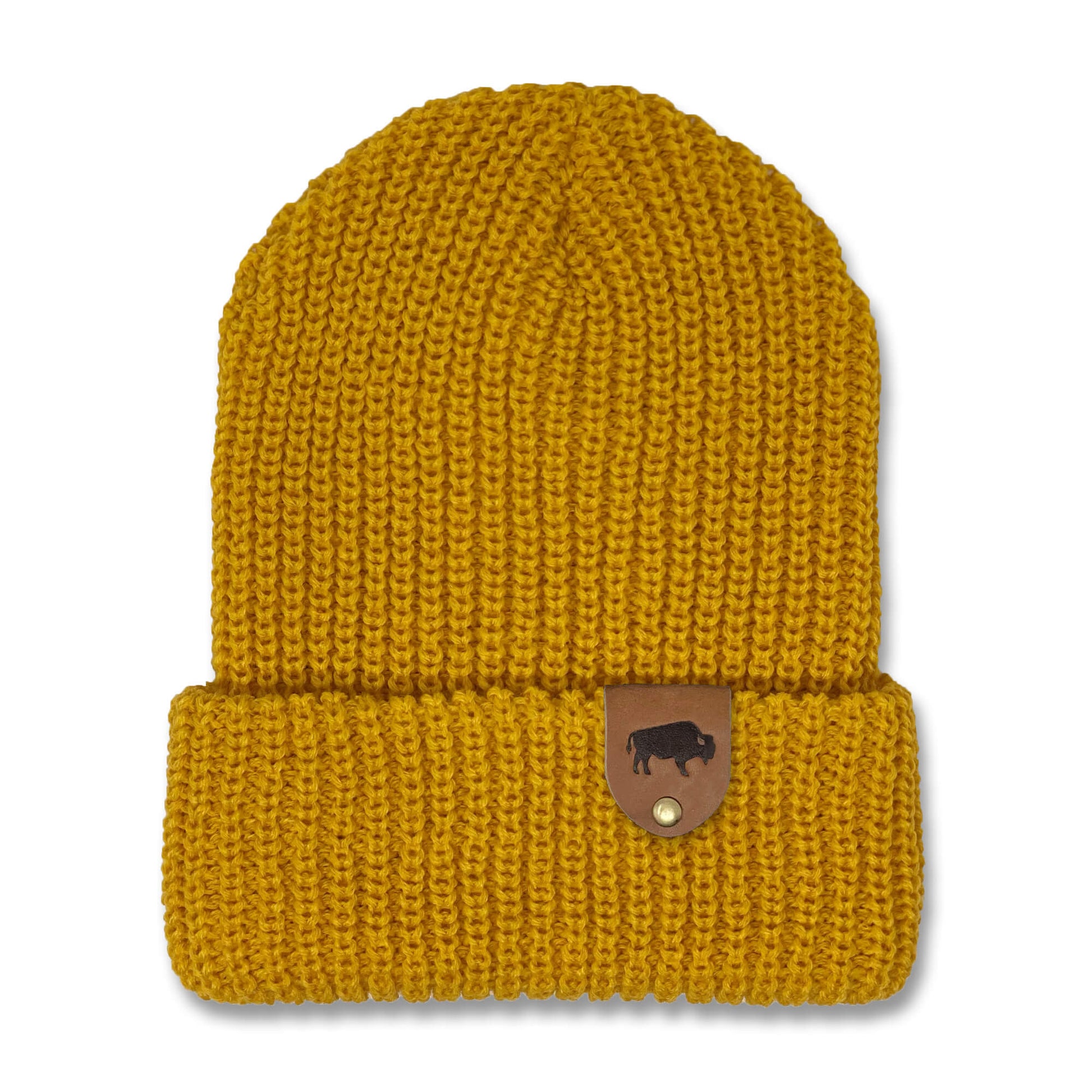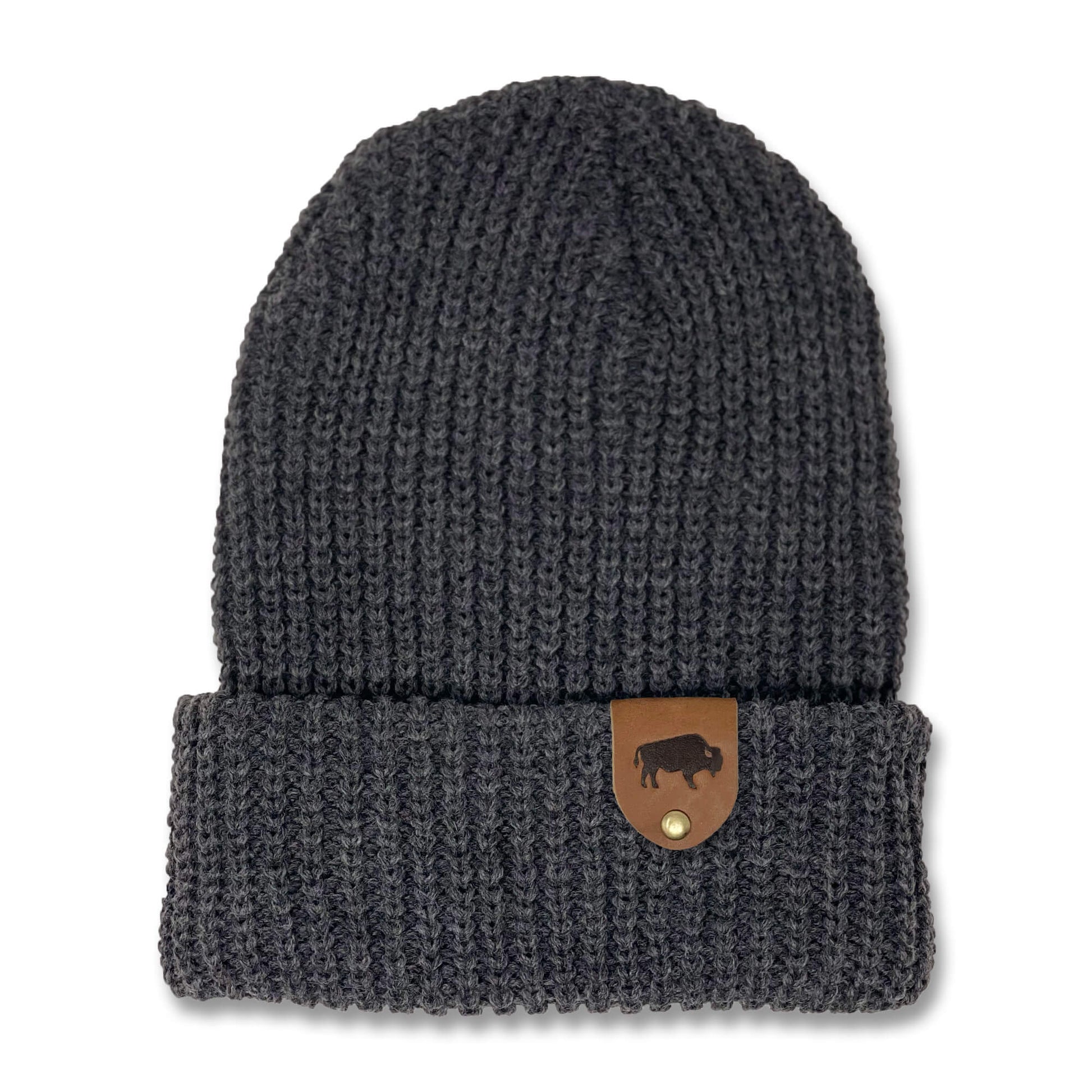 Our chunky knit toque is made in New York by a manufacturer that’s been making headwear for over 30 years. Made from a soft, plush and dense acrylic, this toque will keep your head warm but still let it breathe. The toque can be worn cuffed or uncuffed and features a full-grain leather patch with a heat stamped design, attached with an antique brass rivet.