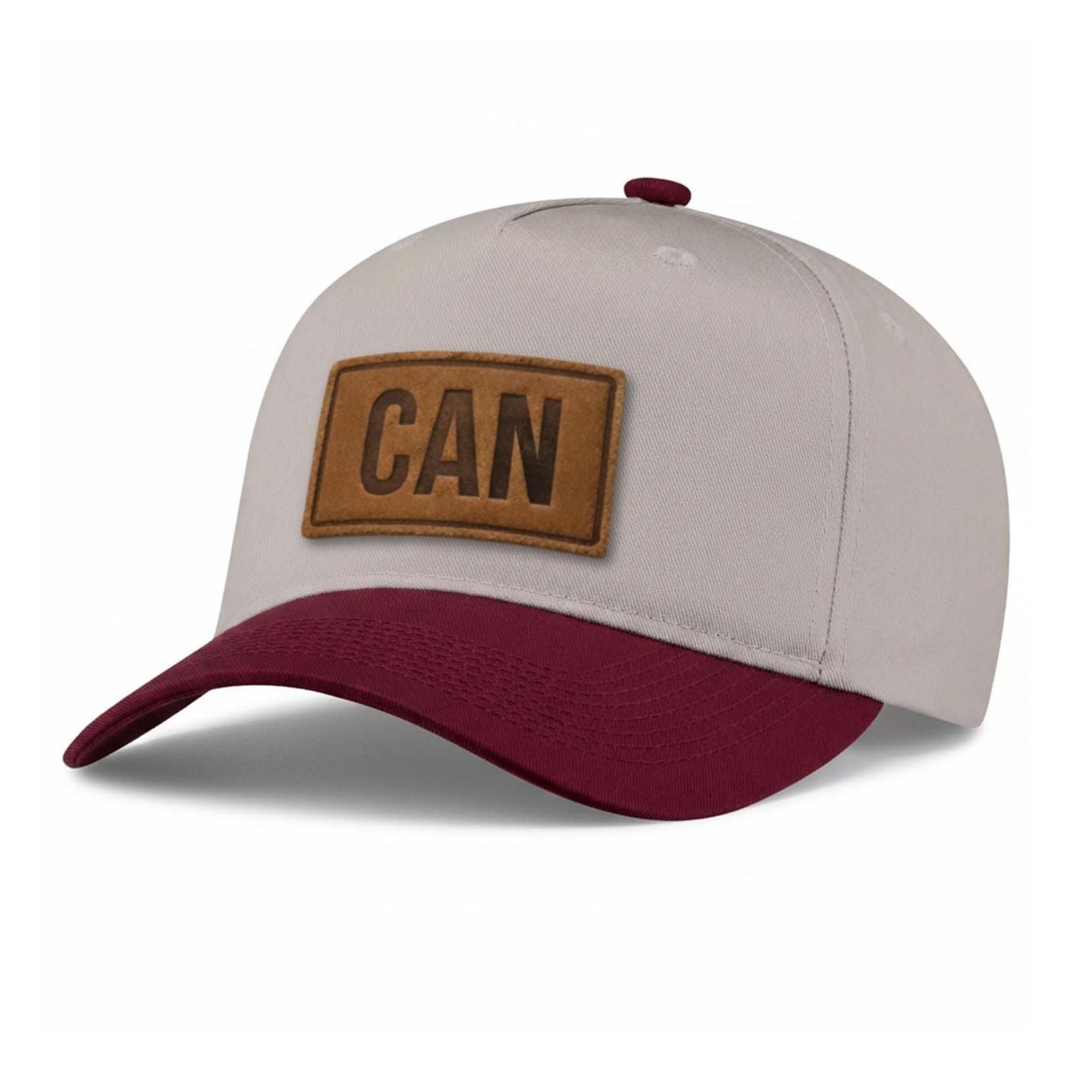 CAN. Canada is home. A leather patch 5-panel hat with a structured A-frame shape. Heat-stamped in full-grain leather. Handcrafted in Ottawa.