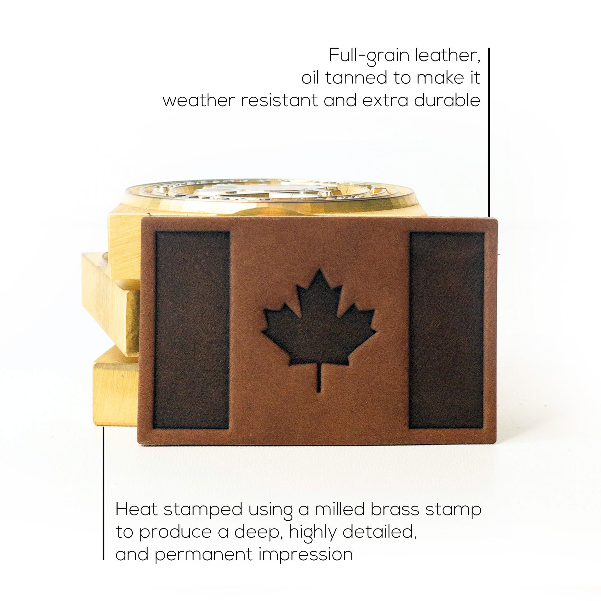 Canadian Flag design on a premium leather patch. Bold. Patriotic.