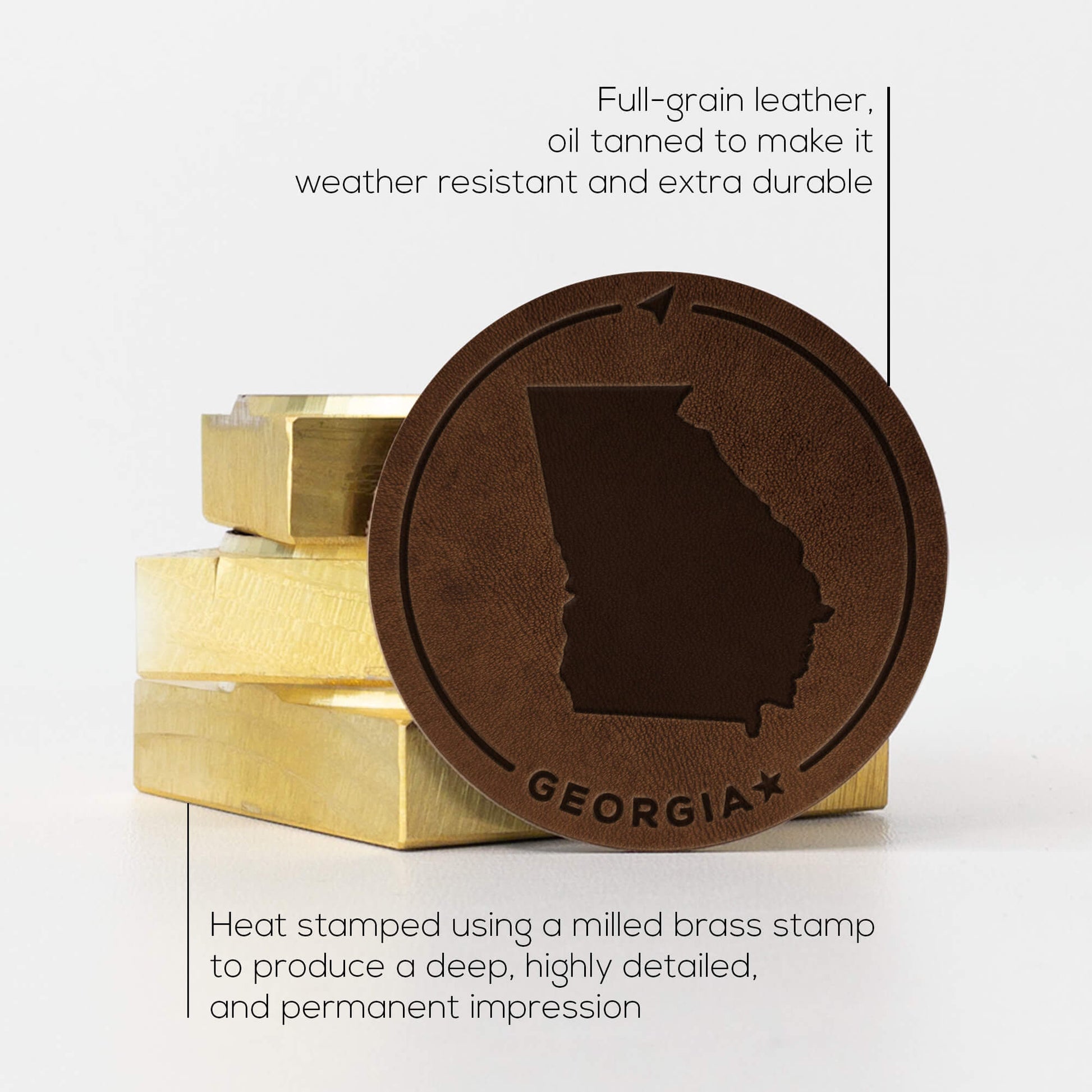 Our leather patches are heat stamped using a milled brass stamp. It produces a deep, highly detailed and permanent impression on the leather that doesn't fade over time like a lasered patch.