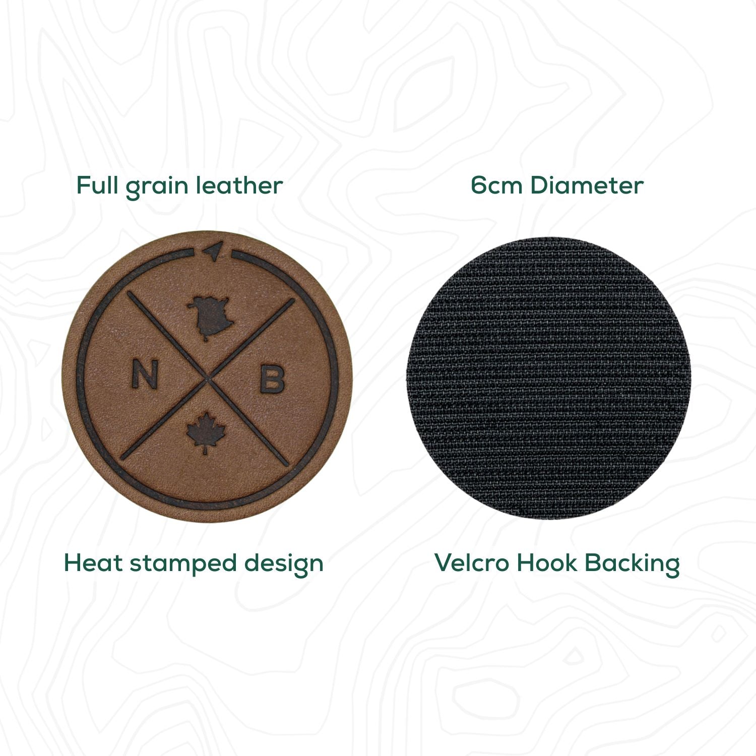 Full-grain leather patch that gets better with age. Heat-stamped, not lasered, for a deep and detailed impression that lasts.Velcro backing attached for easy application to your gear. Hook side only, loop side not included. Backed by our lifetime warranty.
