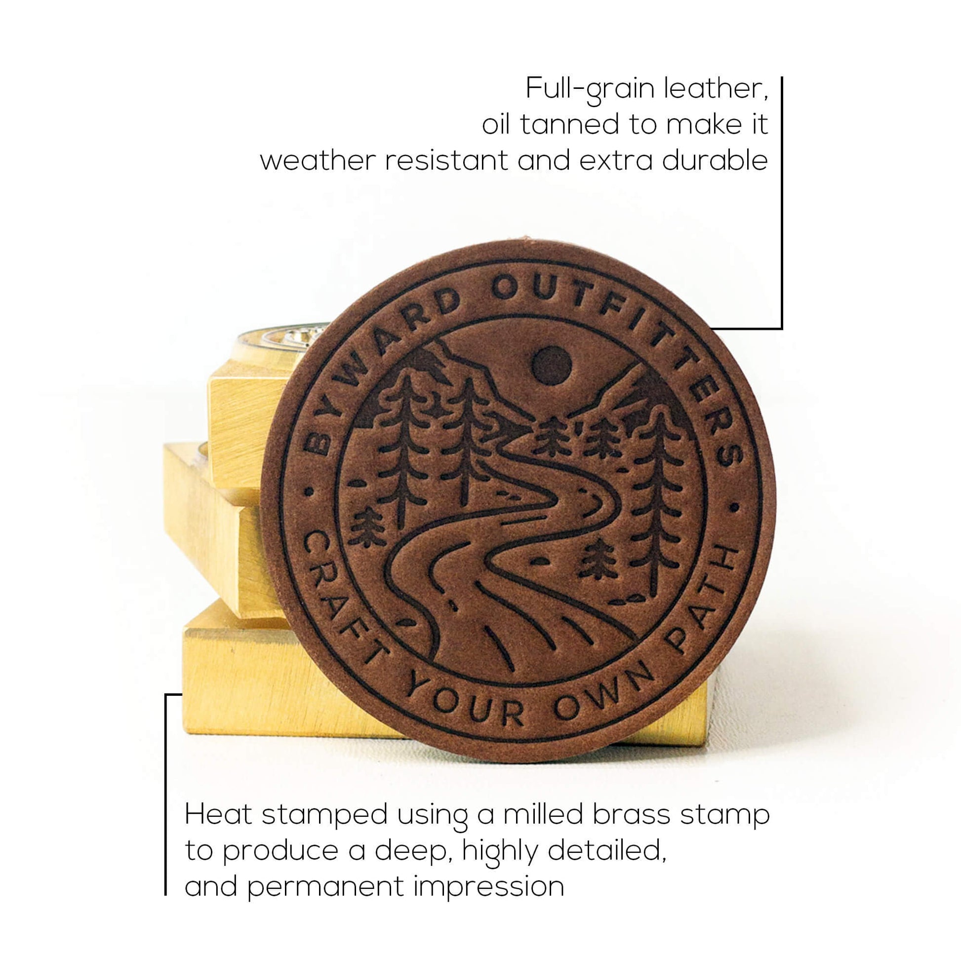 Embark on a journey into the wild with our "Winding Wilderness" patch. The design is heat-stamped into full-grain leather, producing a deep, highly detailed and permanent impression on the leather that doesn't fade over time like a lasered patch.